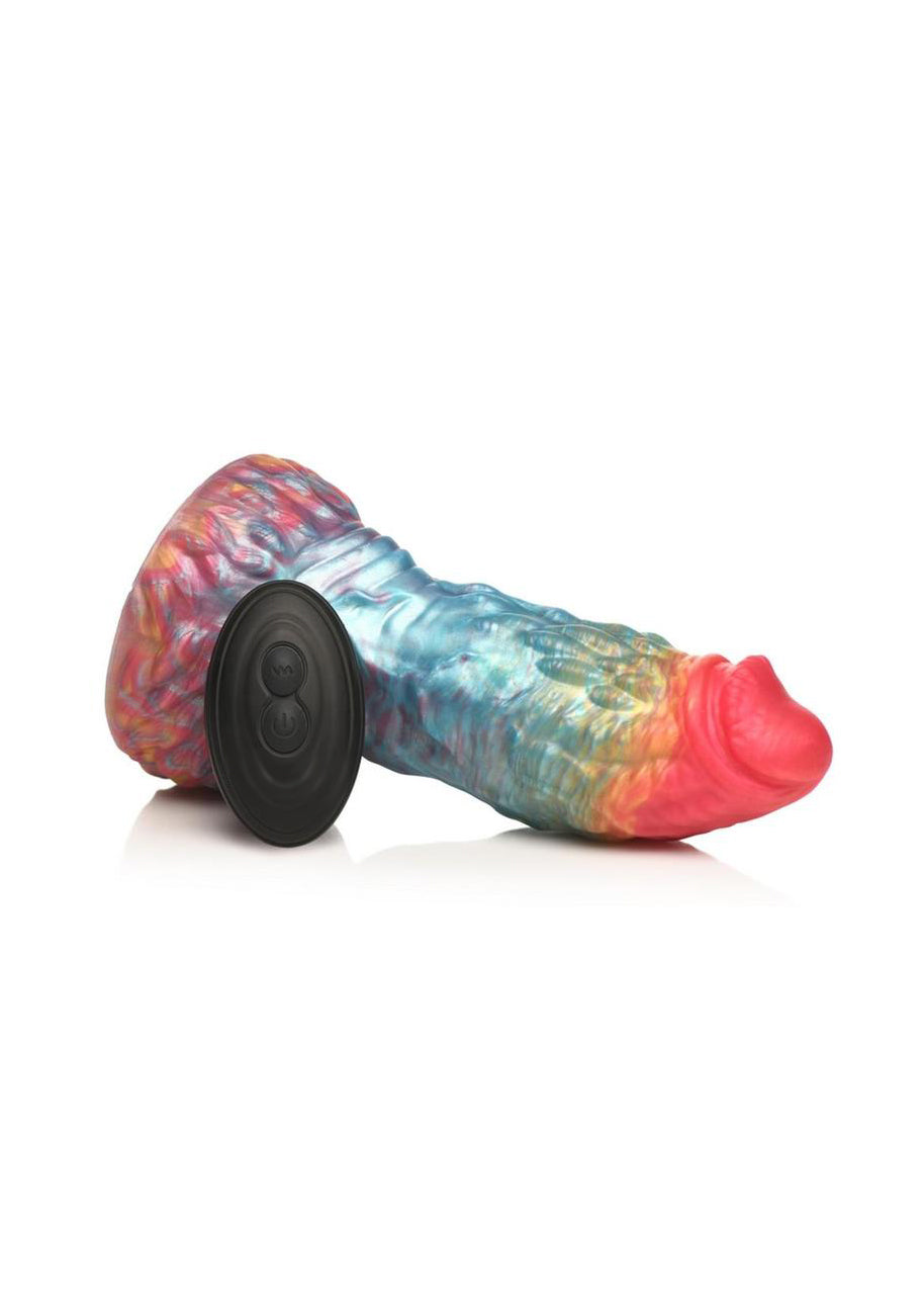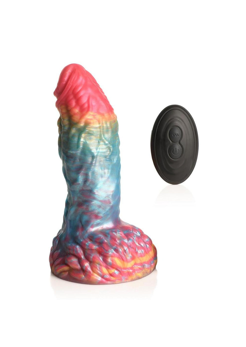 Introducing The Albatross, a magnificent, iridescent rainbow-colored dong inspired by mystical giant birds. Its large, tapered head and veiny shaft adorned with feathery bumps and ridges offer delightful sensations. Enjoy hands-free rides with the strong suction cup base. Dive into pleasure with its powerful vibrator featuring 3 speeds and 7 patterns, controlled via a battery-operated remote. Crafted from premium, phthalate-free silicone for safety. Ideal for fantasy roleplay, kinky cosplay, and self-love sessions. Waterproof for shower play (IPX6 rated). Recharge the vibrator easily via magnetic charging.