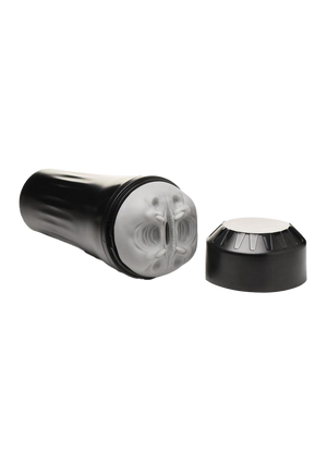 Once your solo session is over, cleaning up is easy. Removing the plug from the base turns the case open ended allowing you to easily rinse and let water run right through it. For a more thorough clean up process, remove the stroker sleeve and wash separately, then let air dry before putting it back. Always keep the cap on when not in use to keep free of dust and debris.