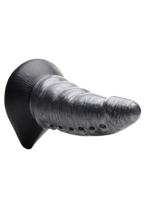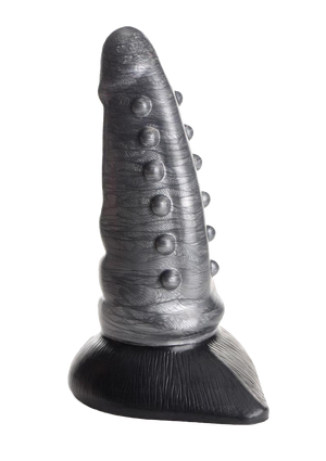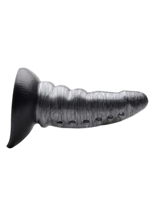 This silver and black fantasy dildo will let your imagination run wild! Whether you are using this monster dildo alone with the suction cup design or using it with a harness to share the fun, you will love this tapered tentacle-like sex toy with bumps lined up the shaft for extra pleasure.