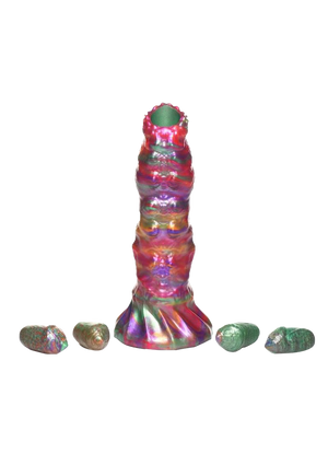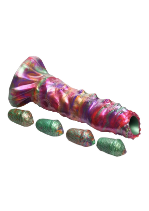 Aliens have invaded Earth and you’ve been chosen as the lucky one to start a brand new hybrid race. Enjoy an entirely new experience with The Breeder Dildo, a sex toy like no other. This thick dildo features rich and vibrant colors of pink, green, orange and purple with a textured shaft that will drive you wild with every inch that penetrates you deeper and deeper. The shaft itself is thick and large with small bumps that surround the head and larger bumps and ridges that go down to the base. The Breeder comes with 4 larva eggs that can be inserted into the hollow sheath for an exciting breeding experience. The strong suction cup base is perfect for a hands free solo ride or can be used with a compatible harness to bring a partner in on this breeding fun.