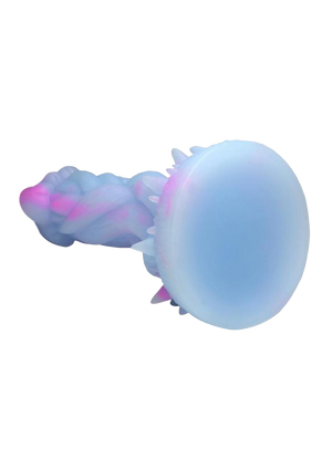 Dive into an underwater adventure with the Celestial Jellyfish Dildo! This captivating pleasure toy features a pale blue and pink design with a mushroom-shaped head that provides an exciting pop upon insertion. Prepare to be stretched wide and deep as you explore the ropey, bumpy texture of the silky-smooth silicone. Soft little spikes at the base offer delightful tickles against your skin when you take in the full length. The wide base ensures powerful suction, allowing for hands-free enjoyment by securely attaching it to any flat surface. For even more excitement, pair it with a compatible strap-on harness for thrilling pegging play. Crafted from premium, phthalate-free silicone, this dildo offers a firm core and a soft, silky surface. Unleash your imagination with this epic adult toy and bring your sci-fi, fantasy, roleplay, or cosplay scenes to life!
