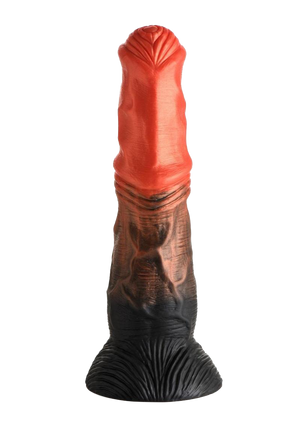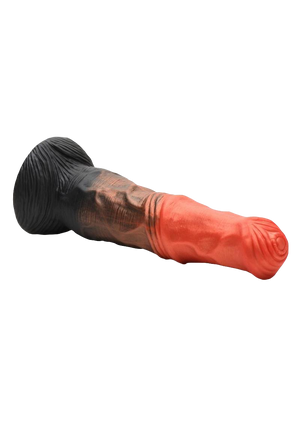 - Fantasy Equine Dildo: This orange, copper and black dong is inspired by fierce centaur beings! It is long, broad, veiny and looks like a horse's rod. The wide head has fleshy rings that circle the tip and the midsection has another row of ribbed rings as the skin wrinkles in the center.