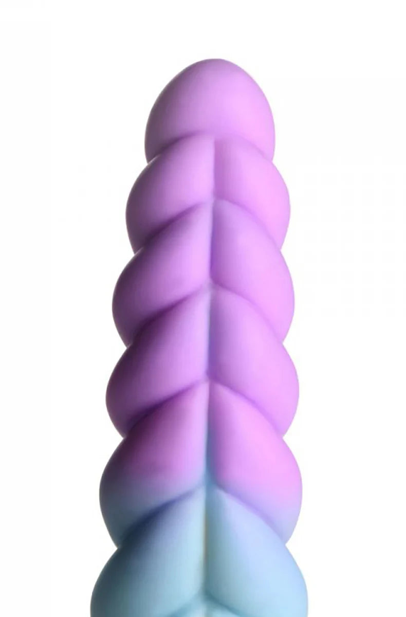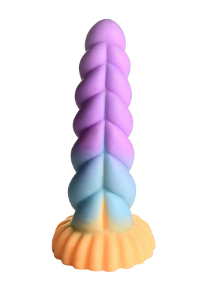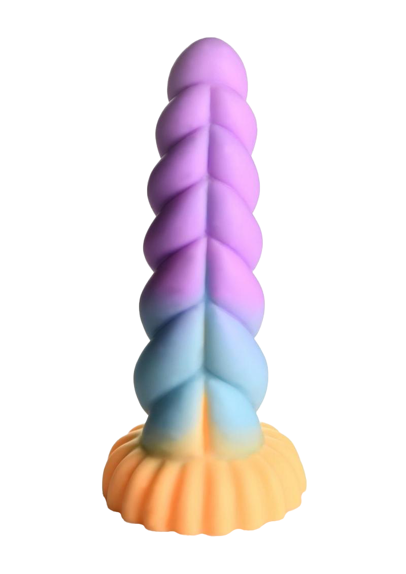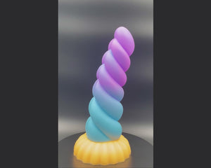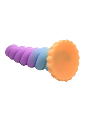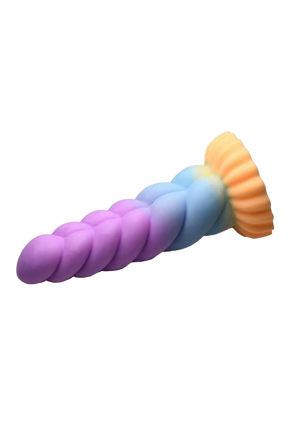 Embark on a magical journey with this mystical unicorn dildo featuring hues of purple, blue, and orange that twist together allowing you to feel every ridge and curve along the way. With it's thick long shaft and a swirled design you'll find this fantasy sex toy to be perfect for reaching ecstasy. Suction the base to a flat surface for a hands free ride or combine it with a harness and invite someone to join you for this orgasmic adventure.