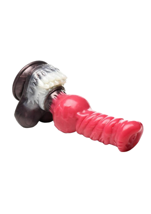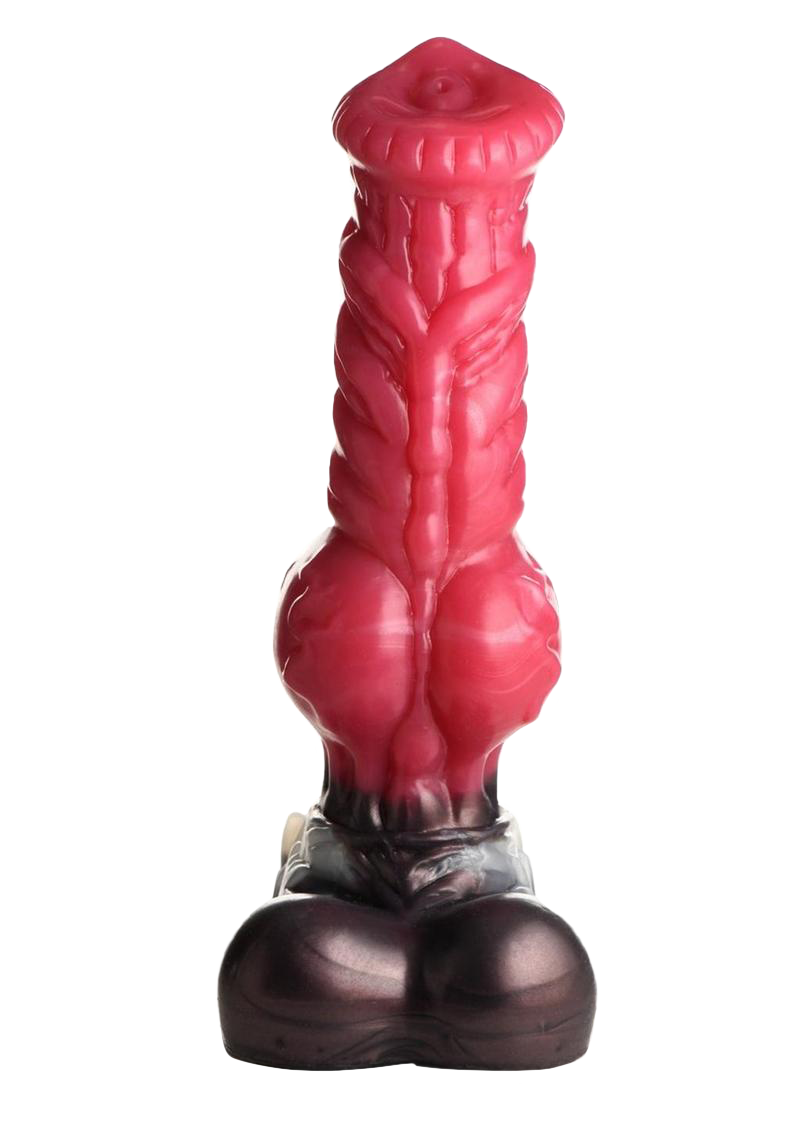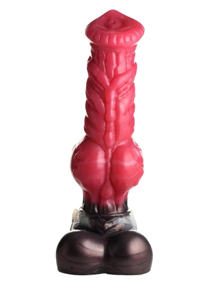 Prepare to experience a primal fusion of pain and pleasure with the Feral Canine Dildo. Inspired by wild dog or wolf-like creatures, this bright red shaft possesses a wide, pointed, and flat head, along with rows of thick, ropey ridges and a thick, round knot at the center. Adorned with a tuft of white fur over shiny, brown skin and a pair of big balls at the base, this dog dildo exudes a captivating allure. The wide base offers powerful suction, enabling hands-free enjoyment on any flat surface. For thrilling pegging play, pair it with a compatible strap-on harness. Crafted from premium, phthalate-free silicone, this dildo features a firm core and a soft, silky surface. Succumb to the untamed pleasure of the Feral Canine Dildo.