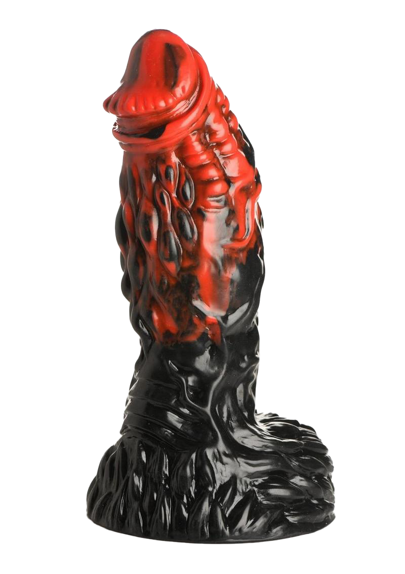 Ignite your desires with the Fiery Obsidian Monster Dildo! This volcanic pleasure tool is inspired by the Roman god of fire, delivering an intense and passionate experience. Its bright red and deep black color scheme sets the stage for a scorching encounter. The textured shaft is adorned with bumps, ridges, grooves, and ribs, tantalizingly stimulating you with each thrust. With a permanently wet look, as if it's sweating from the heat, this swollen dong is ready to unleash volcanic pleasure. Crafted from premium, flexible, and phthalate-free silicone, it ensures a body-safe experience when used with water-based lubricants. The strong suction cup base allows for hands-free enjoyment, while the harness compatibility opens up possibilities for kinky cosplay and fantasy roleplay. After your fiery encounter, clean the dildo with warm water and mild soap, followed by a toy cleaner, and let it air-dry. Keep it away from direct sunlight and heat, preserving its passionate power. Brace yourself for scorching pleasure with the Fiery Obsidian Monster Dildo!