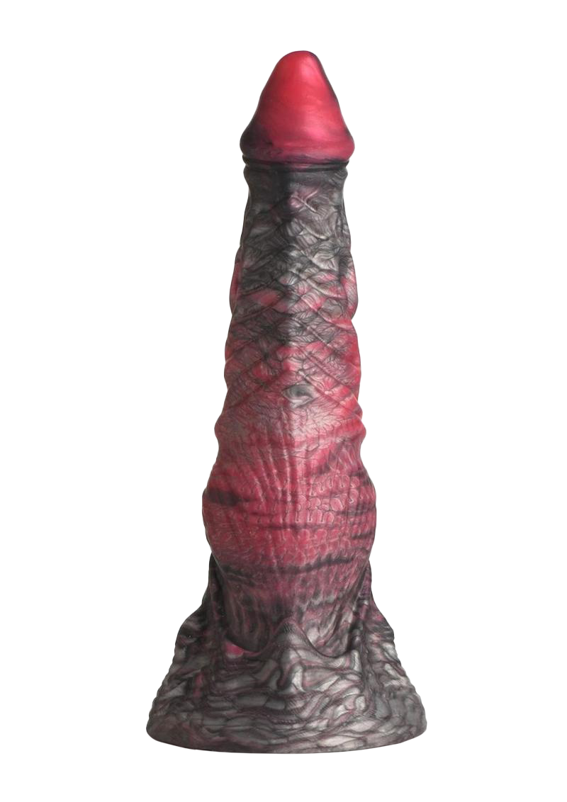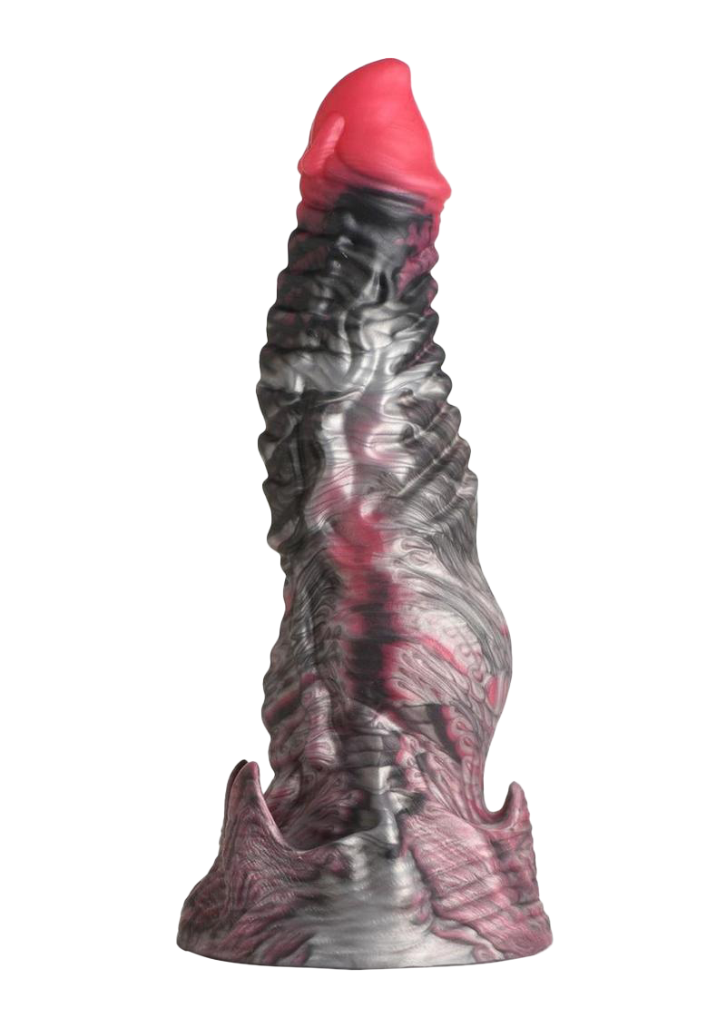 Prepare to be claimed by the King of the Underworld with the extraordinary God of Death Dildo. This mythical masterpiece, inspired by Hades himself, features a captivating black and red design with devilish details. The tapered tip effortlessly glides inside, while countless grooves and ridges provide sensational pleasure. Experience intense satisfaction as you explore the depths of pleasure with this divine monster dildo. The wide base offers powerful suction, allowing for hands-free enjoyment by securely attaching it to any flat surface. For added excitement, pair it with a compatible strap-on harness for thrilling pegging play. Crafted from premium, phthalate-free silicone, it boasts a firm core and a soft, silky surface. Unlock endless possibilities for sci-fi, fantasy, roleplay, or cosplay scenes with this epic adult toy. Surrender to the allure of The God of the Dead's rod and embark on a journey of unforgettable pleasure through the underworld.