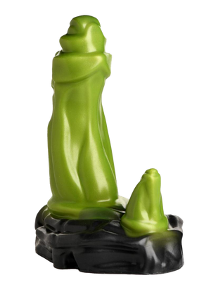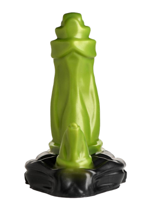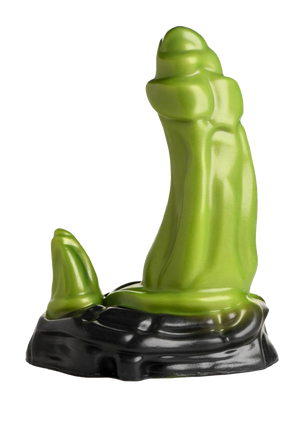 Unleash your primal desires with the Green Ogre Dildo. Its massive, firm yet flexible green shaft offers a surprising knobbed tip that gradually widens, delivering intense pleasure. At the base, an additional horn provides dual stimulation for your clitoris or perineum. Let the smooth ridges of this monster rod take you on a wild ride. The wide base features powerful suction, allowing for hands-free play on any flat surface, or combine it with a compatible strap-on harness for pegging adventures. Crafted from premium, phthalate-free silicone, this dildo boasts a firm core and a soft, silky surface. Surrender to the allure of this fantasy toy as the Green Ogre ravages your senses.