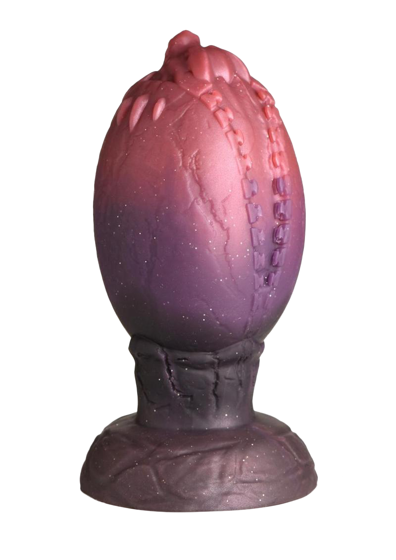 Experience the enchantment of the Hatchling Egg and unleash your inner dragon. As the egg cracks open, a baby dragon emerges, ready to ignite your desires. The glittery, dark red and brown egg features zipper-like ridges along the crack and a tapered dragon-head tip for easy insertion. The round, wide, and squishy body provides a satisfying fill. After penetration, enjoy the unique pleasure of laying the egg. Crafted from premium, phthalate-free silicone, this plush and silky-smooth egg ensures a luxurious experience. Embrace your royal role as the Queen Mother of Dragons or the King of Dragon Eggs with this extraordinary fantasy toy.