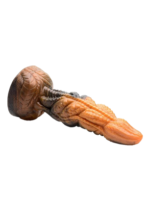 Allow yourself to let your fantasies take over with this powerful monster dildo. The Hellion Tentacle Dildo is a unique sex toy you will want to keep using over and over again featuring a tentacle full of ripples and waves you will feel every inch of the way and beautiful marbling of black, brown, and orange. Enjoy this muscular creature with a partner by connecting it to a harness or enjoy all the pleasure yourself handheld or by suctioning the base to a flat surface.