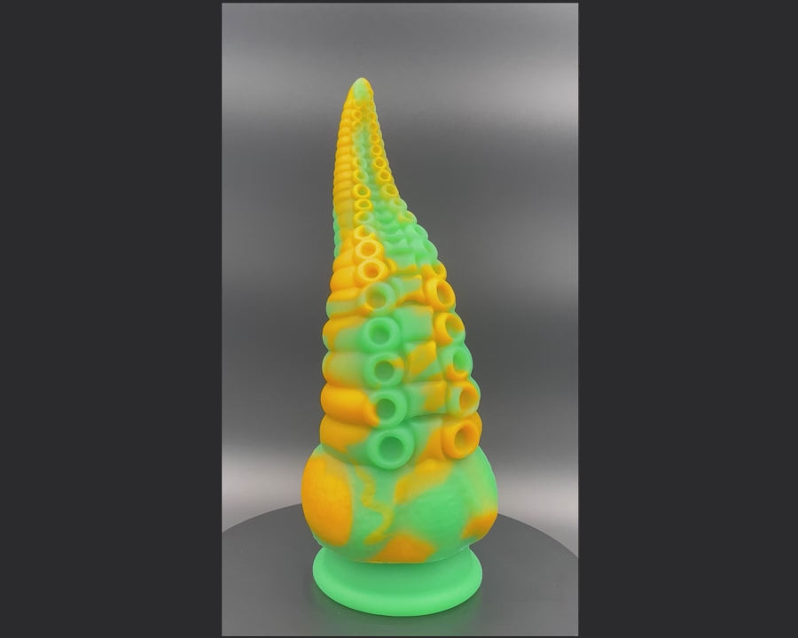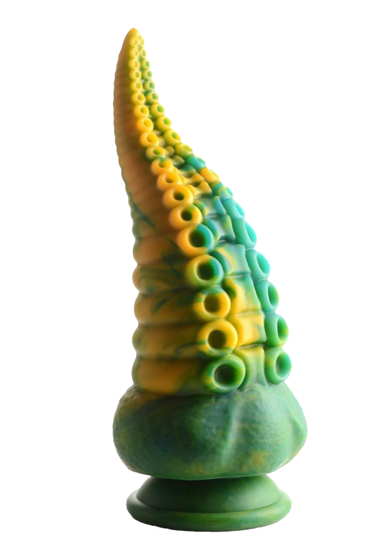 The Kraken Tentacle Dildo comes from the very depths of the dark sea to deliver you the excitement and pleasure you've been searching for. Enjoy this long and tapered tentacle that features twin rows of suckers and circling ridges that go down to the base. Every Kraken Tentacle Dildo is marbled with colors of yellow, green and blue that is unique to each individual dildo. Whether you are using this fantasy dildo handheld, suctioned to a flat surface, or with a partner using a harness The Kraken will let your imagination run wild.
