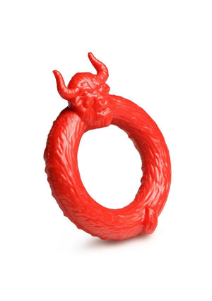 Unleash your primal instincts with the Mighty Beast cock ring! Crafted from super stretchy, phthalate-free silicone in a bold red hue reminiscent of a raging bull. Its head and horns rest atop your shaft, ready to charge. Versatile design fits over the shaft or around shaft and balls for enhanced pleasure, intensified climaxes, and prolonged rigidity. Elevate your playtime and infuse any fantasy roleplay with an extra dose of excitement!