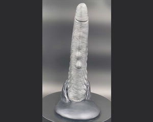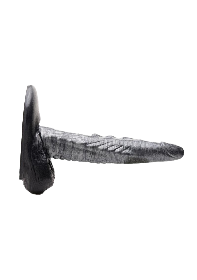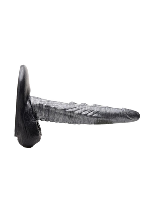 Experience the dark side of your fantasies with the rock hard Monstrous Dildo. This extra long silver and black monster dildo is ridged and textured down the entire shaft and will have you begging for more every time you use it. Use this fantasy dildo handheld or suction it to a flat surface for a hypnotic hands-free ride. For some extra fun use it with a harness and invite someone else to join in on the excitement!