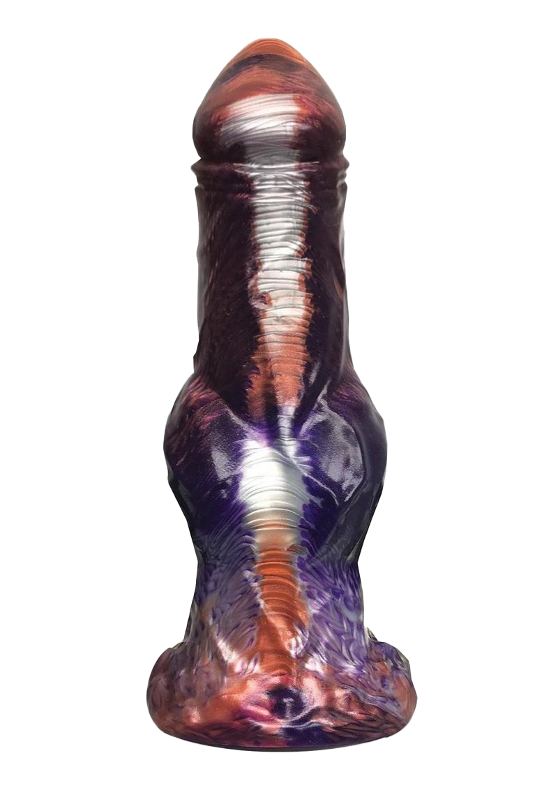 Experience a world of mystic pleasure with the Mythical Minotaur Dildo! This handsome, metallic-hued masterpiece is designed to ignite your desires. Its muscular shape and imposing 9" height make it a challenge that's irresistibly erotic. The massive 3" knot at its base adds an extra element of pleasure. With sleek, fleshy head and captivating coppered, silvered, and purple tones, it disappears into your forbidden valley, providing an unforgettable ride. The extra-strong suction base ensures a secure hold, while the harness compatibility brings your creature fantasies to life with a partner. Crafted from 100% body-safe silicone, this dildo is phthalate-free and easy to clean with warm water and soap. Get ready to experience mythical pleasure with the Mythical Minotaur Dildo!
