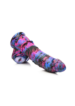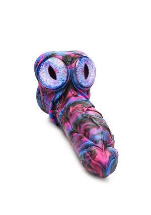 Introducing the Nebula Dildo, a cosmic masterpiece designed for out-of-this-world pleasure. This alien dildo features a unique design with its member positioned right between its eyes, offering a truly galactic experience. The vibrant mix of red, purple, blue, black, and shimmering specks of glitter creates a stunning constellation ready to launch you into another dimension of pleasure. The textured and grooved shaft, paired with a tapered tip, ensures easy insertion and heightened stimulation.