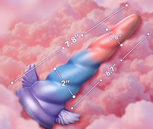 Take your fantasies to flight with the Dream Rider Horn, a vibrant unicorn-inspired dildo designed for magical pleasure. With a tapered tip for easy insertion and spiraled ridges along the shaft, this toy delivers a uniquely stimulating ride from start to finish. Its whimsical design features a blend of purple, blue, and red hues, complete with adorable pegasus wings molded into the base.