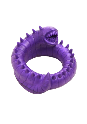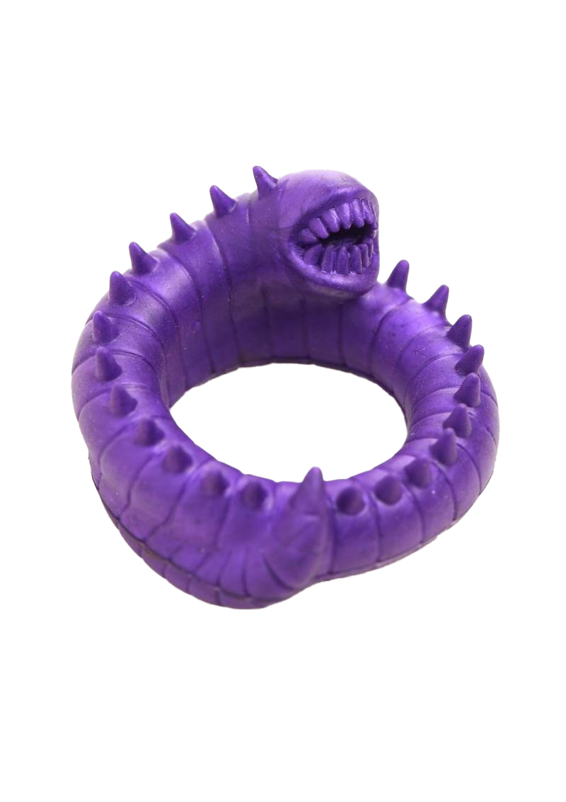 Boost your pleasure with the Sandworm Alien Cock Ring! This toothy, purple, galactic worm is crafted from super stretchy and plush silicone, ensuring a safe and comfortable experience. The deep purple color and spiked spine make a bold statement on your cock, empowering you to penetrate your partner's defenses with your fierce companion. Versatile in design, it can be worn over the shaft or stretched to fit around the shaft and under the balls. This cock ring enhances playtime, intensifies climaxes, and promotes longer-lasting rigidity. Whether you're exploring fantasy roleplay or adding excitement to a creative scene, the Sandworm Alien Cock Ring brings an element of fun to your intimate encounters. Unleash your wild side and elevate your pleasure with this captivating accessory!