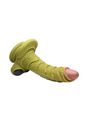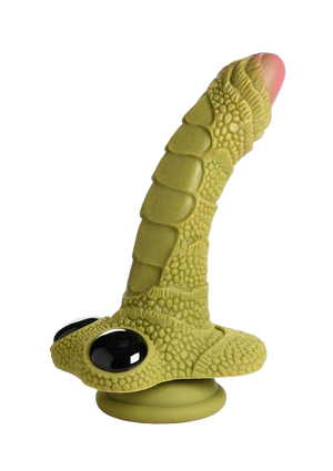 Let your imagination run wild with the Scaly Beast Dildo. This unique dildo features green scales and ridges of all sizes, a silky smooth pink tip, and dark glass eyes that will stare up into your depths as you go for a ride. With a curved shaft that will hit the perfect spots and textures you’ll feel every inch you go, you’ll be in for a sexual experience like no other. Use the suction cup for a hand-free ride or combine with a harness to share the pleasure with someone else.