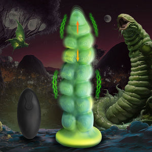 - Fantasy Dildo: This caterpillar-shaped, yellow-green shaft is adorned with round knobs that provide extra texture and stimulation as it automatically thrusts.