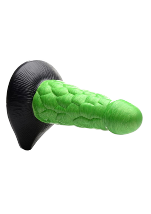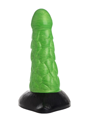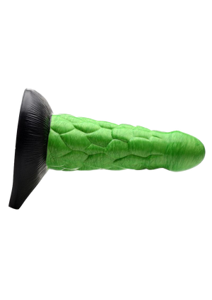 Treat yourself to an unforgettable experience with the Toxic Invader Dildo. This metallic green and black reptilian dildo is perfect for bringing you to climax with it's scaly textured shaft that goes down to the base. Use the suction cup base to ride this alien dildo hands-free or add it to a harness for some exciting playtime with a partner. Either way, this fantasy dildo will have you begging for more.