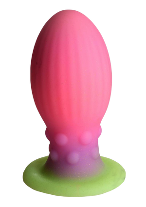 Bigger is always better with the glow in the dark XL Mystic Egg! This unique fantasy sex toy will let your mind run wild with tons of possibilities. In enchanting glow in the dark colors of pink, purple and green and embedded glitter this alien egg will make every use exciting and playful.